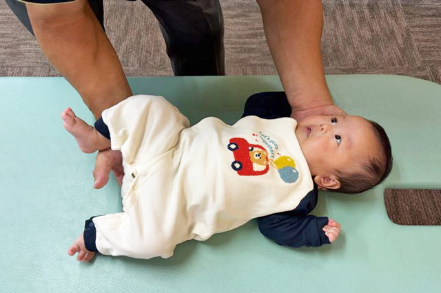 小児専門の理学療法士が赤ちゃんの姿勢や筋肉の使い方、反射や感覚の出方などを評価し、その子の状態に合わせた無理のないサポートを行います。