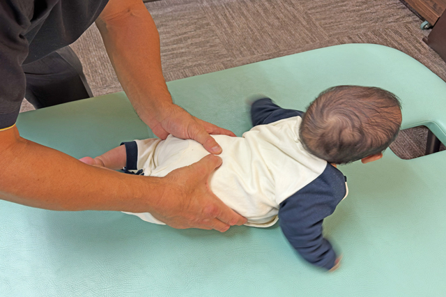 赤ちゃんの柔らかい体に配慮した優しい手技で、頭蓋骨や体全体のバランスを整えていきます。向き癖や体の緊張を改善することで、頭の形の改善をサポートします。