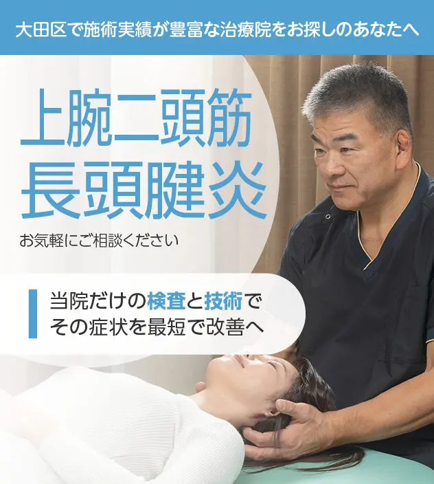 当院の綿密な検査で他院では見逃しがちな上腕二頭筋長頭腱炎の原因も見逃しません。的確な診断結果に基づき、最適な治療計画をご提案いたします。