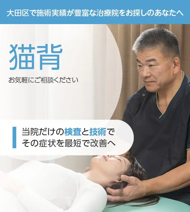 当院は猫背矯正の施術を得意としており、専門的な施術で原因にアプローチし根本改善と再発予防を目指します。猫背でお悩みの方は、ぜひ当院にお任せください。