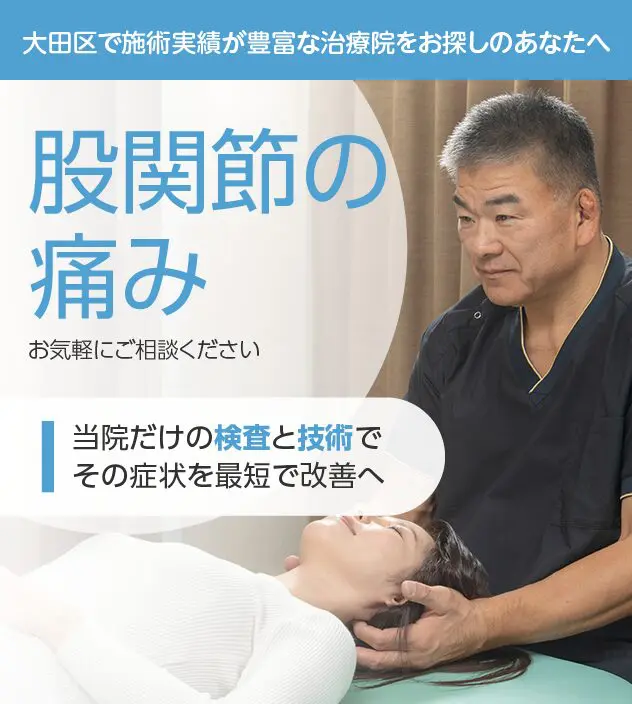 当院の綿密な検査で他院では見逃しがちな股関節の痛みの原因も見逃しません。的確な診断結果に基づき、最適な治療計画をご提案いたします。