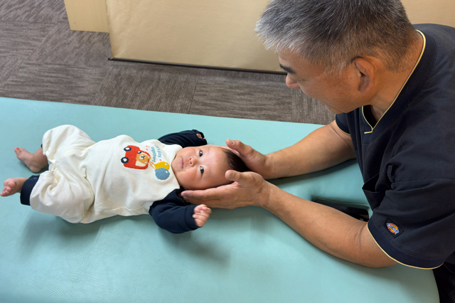 頭の形・向き癖・股関節の可動域などをみていき、お子様の現在の状態を把握します。