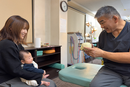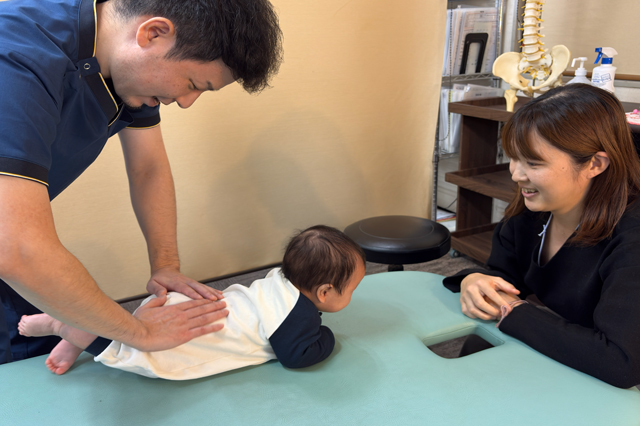 施術は驚くほどやさしく、赤ちゃんの反応や気分を見ながら進めていくため、整体が初めての場合でも不安なくお任せできます。お二人の確かな技術力に加え、落ち着いた穏やかな人柄が重なり、肩の力を抜いて相談できることも、多くの方に選ばれている理由のひとつです。