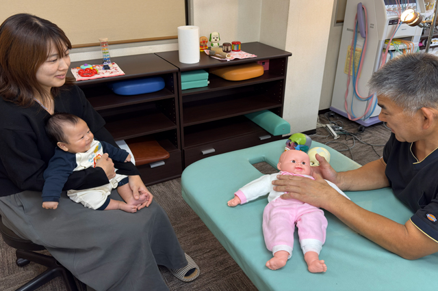 小児専門の理学療法士が赤ちゃんの姿勢や筋肉の使い方、反射や感覚の出方などを評価し、その子の状態に合わせた無理のないサポートを行います。