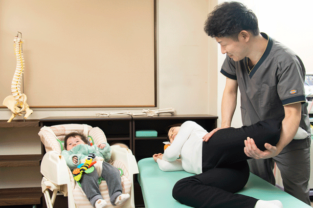 骨盤の開きや歪みの施術に特化。そのため骨盤矯正や腰痛治療だけでなく、様々な産後の症状にも対応することができます。