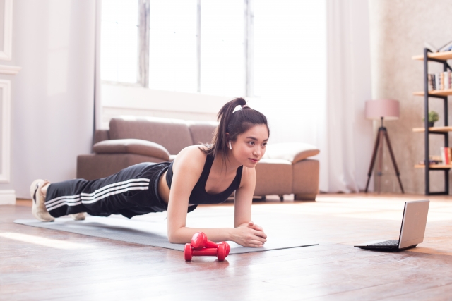 プランクは体幹のインナーマッスル全体を鍛えられる優れた運動です。うつ伏せになり、肘とつま先で体を支えて体を一直線に保ちます。この姿勢を20秒から始めて、徐々に時間を延ばしていきましょう。腰が反ったり、お尻が上がったりしないよう、おへそを背中側に引き込むイメージで体幹に力を入れます。